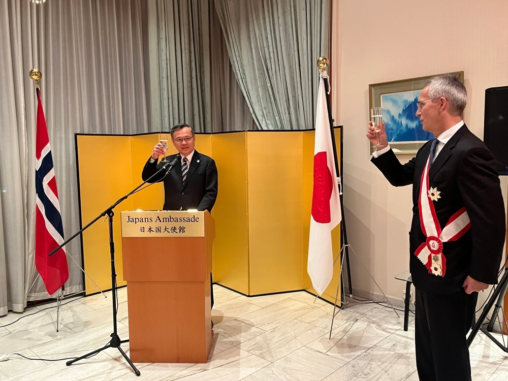 在ノルウェー日本国大使館及び日本政府NATO代表部は、今次叙勲伝達式に当たり、ストルテンベルグ財務相・前NATO事務総長のこのような顕著な功績に対し、改めて祝意と敬意を表します。また、ストルテンベルグ氏が引き続き日本とNATO及び日本とノルウェーの関係強化に貢献されることを祈念しています。